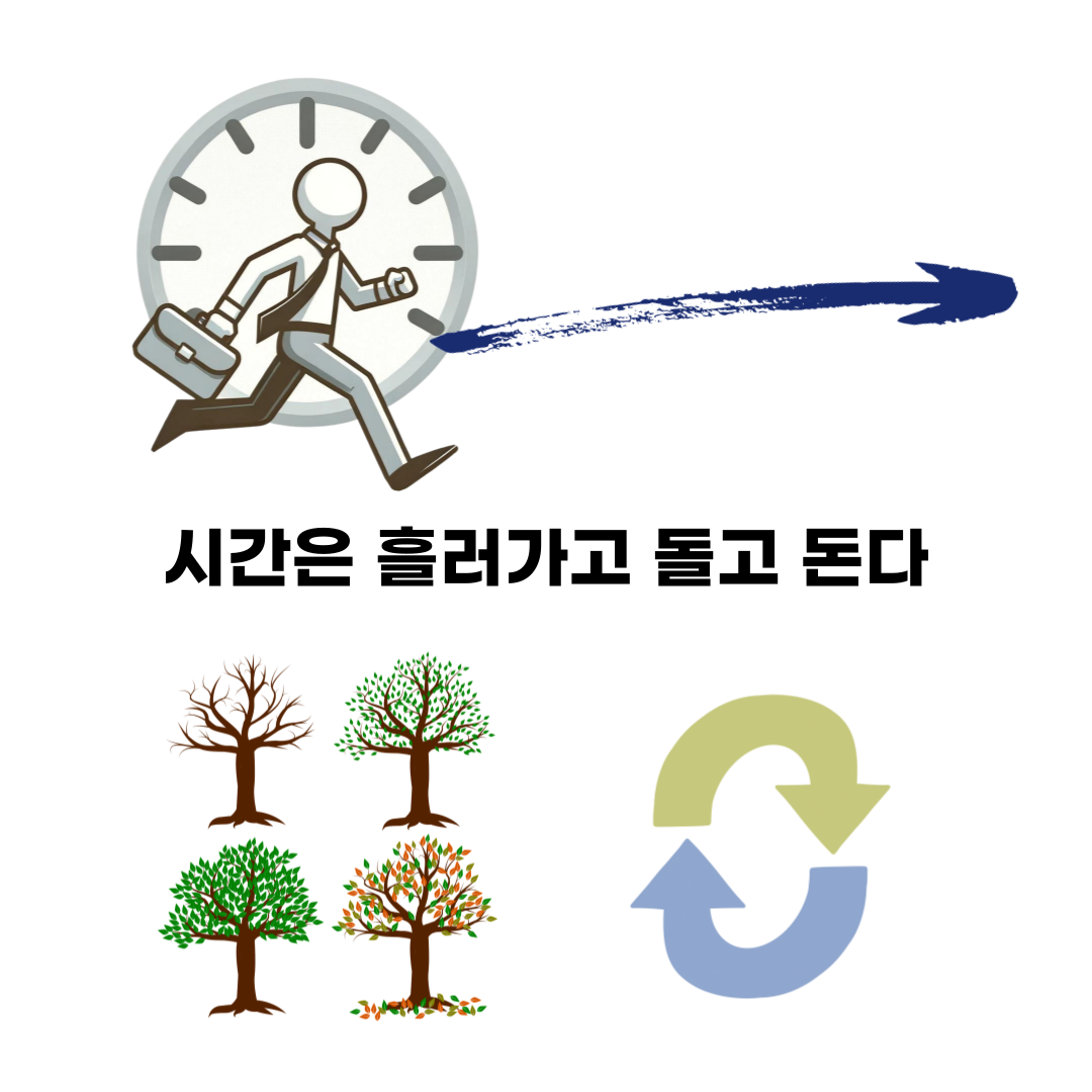 시간은 직선적으로 경험되지만, 커다란 관점에서는 돌고 있습니다.